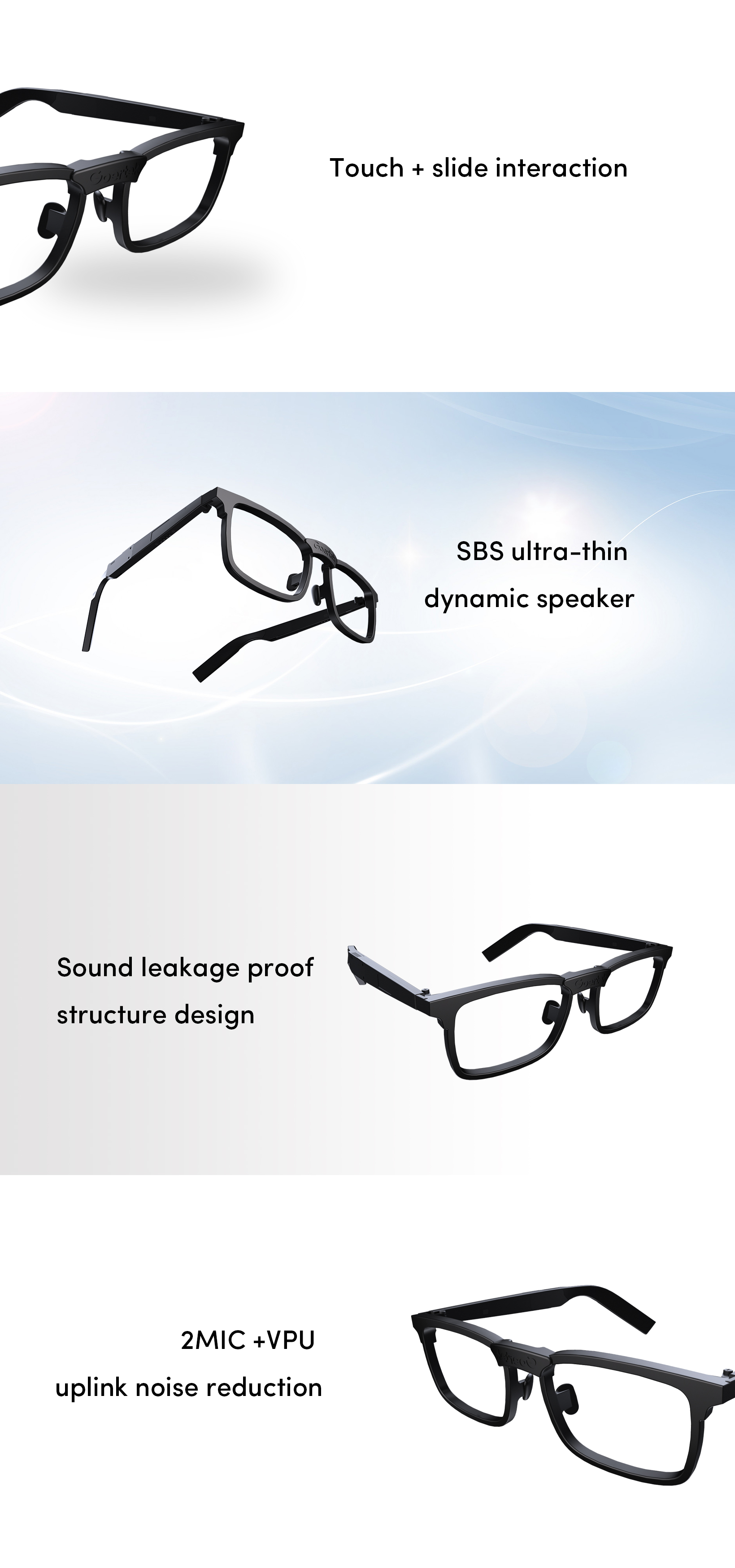 The ultra thin and light-weighted audio glasses bring a brand-new open-ear listening experience.
