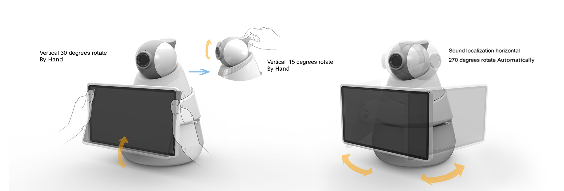 ▪ Voice control ▪ Speech source localization ▪ Video chat ▪ Face recognition ▪ Environment monitor ▪ MiraCast function ▪ DLNA wireless transmission ▪ Remote operation ▪ 0-240 degree flexible rotation